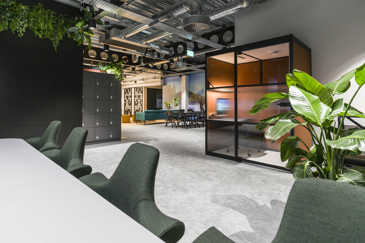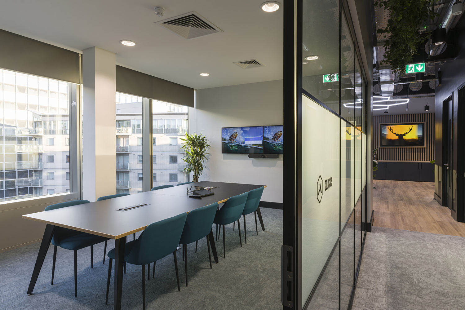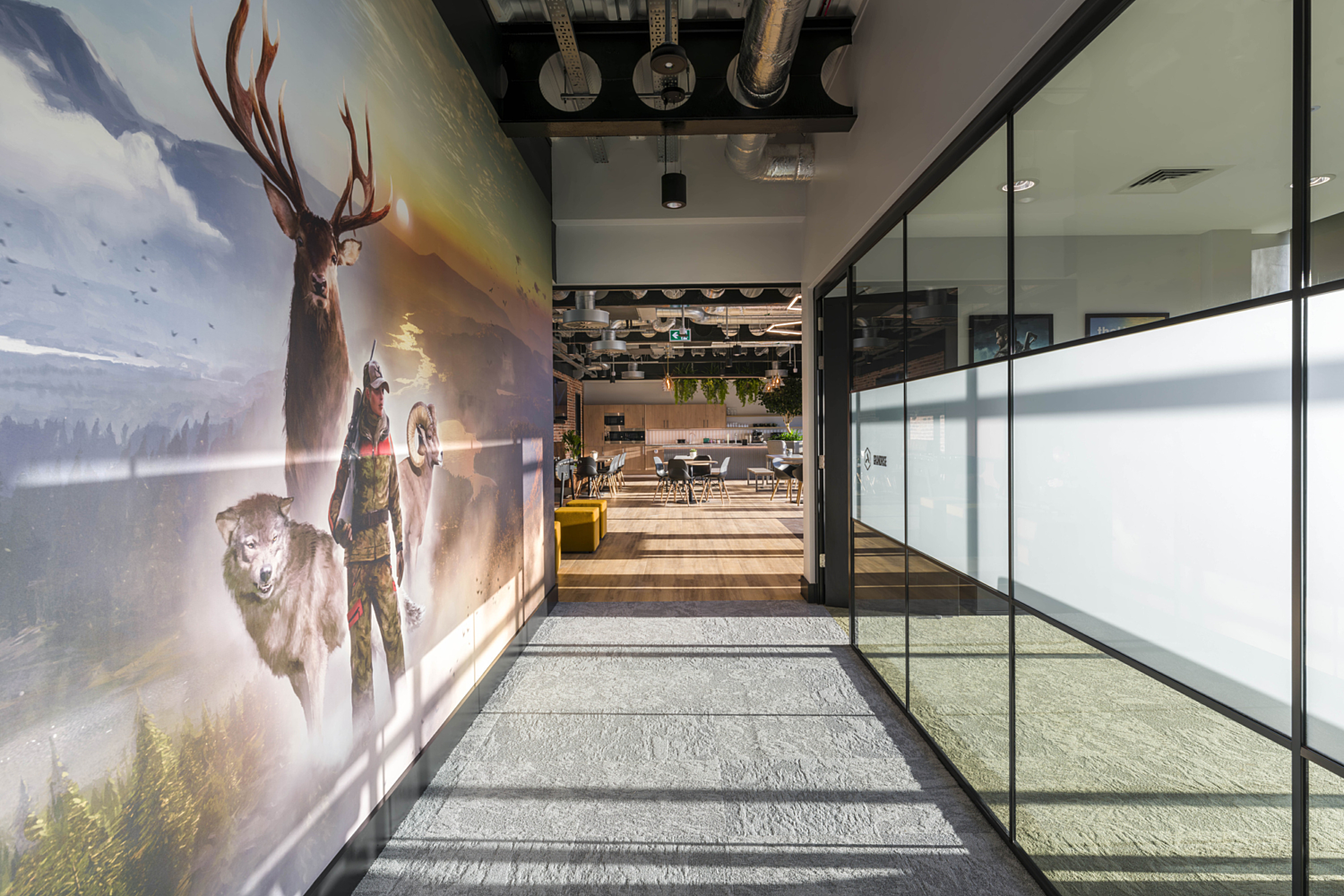 Taking its cue from nature, the design colour pallet softens the industrial elements whilst high resolution graphics punctuate the walls with concept art that reflects the pride in everything Avalanche do. This forms the backdrop for an office that caters to the diverse requirements of the team; taking into account the neurodivergent needs of a rapidly expanding, young workforce, ensuring inclusivity and comfort.