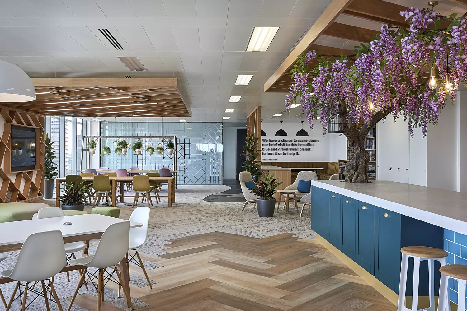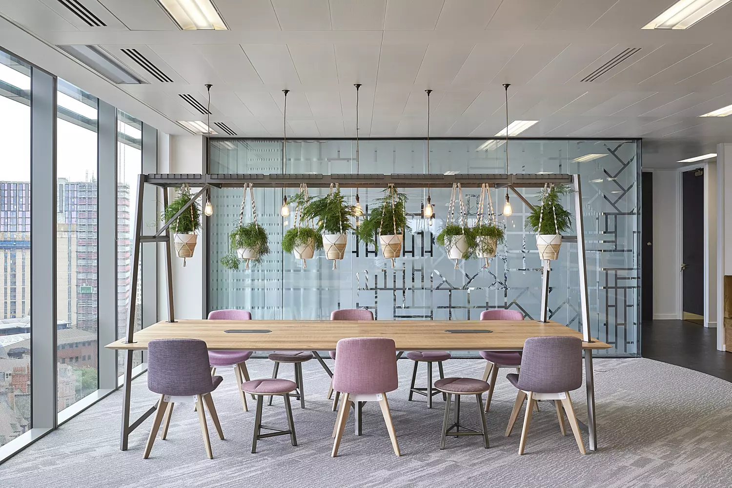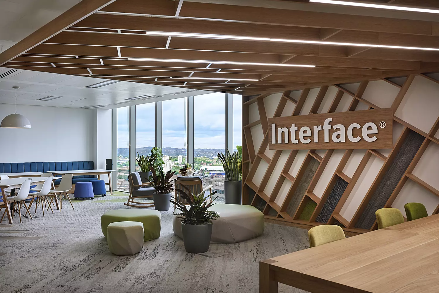 Dubbed The Greenhouse, Interface’s UK headquarters re-defines what's possible with nature 10 floors above the ground. Spread across 7,500 sq ft in Central Birmingham's The Colmore Building, we designed a space that showcased their full suite of flooring finishes. Every square foot is unique, with varied finishes, sustainable furniture and views over the city.