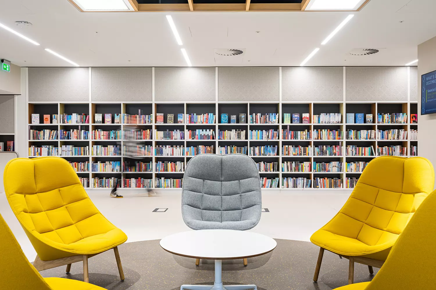 The design of the Central Library prioritises a welcoming, customer-focused experience, emphasising equality of access and a commitment to excellence. Notable features include a striking floating staircase with timber cladding and a frameless glass balustrade. Additionally, a dedicated children's reading area incorporates elements like trees and illuminated hanging letters to create an environment that promotes learning, innovation and knowledge sharing.