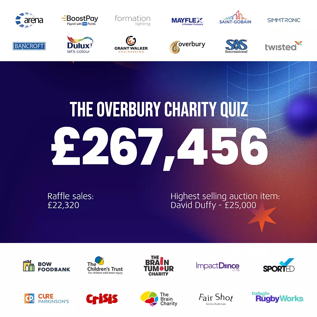 The Overbury Charity Quiz 2024 was a resounding success this year, raising a whopping £267,456 for our 10 chosen charities. This record breaking amount will make a significant impact so thank you to everyone who participated, contributed and donated.