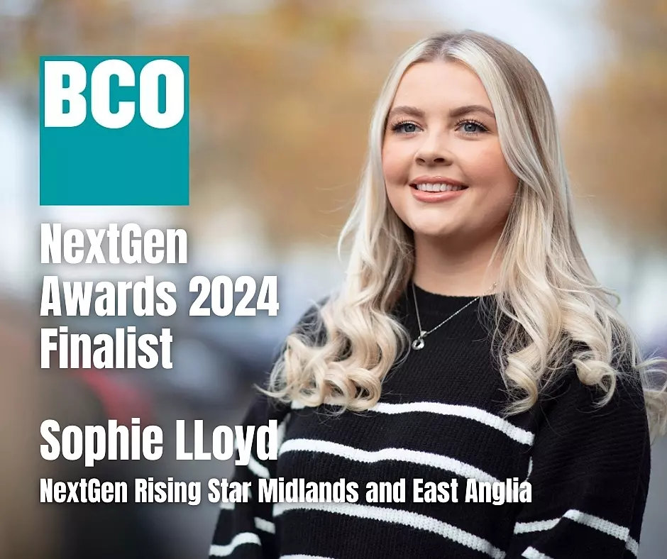 Sophie Lloyd has been selected as a finalist in the BCO NextGen Rising Star (Midlands and East Anglia) awards.